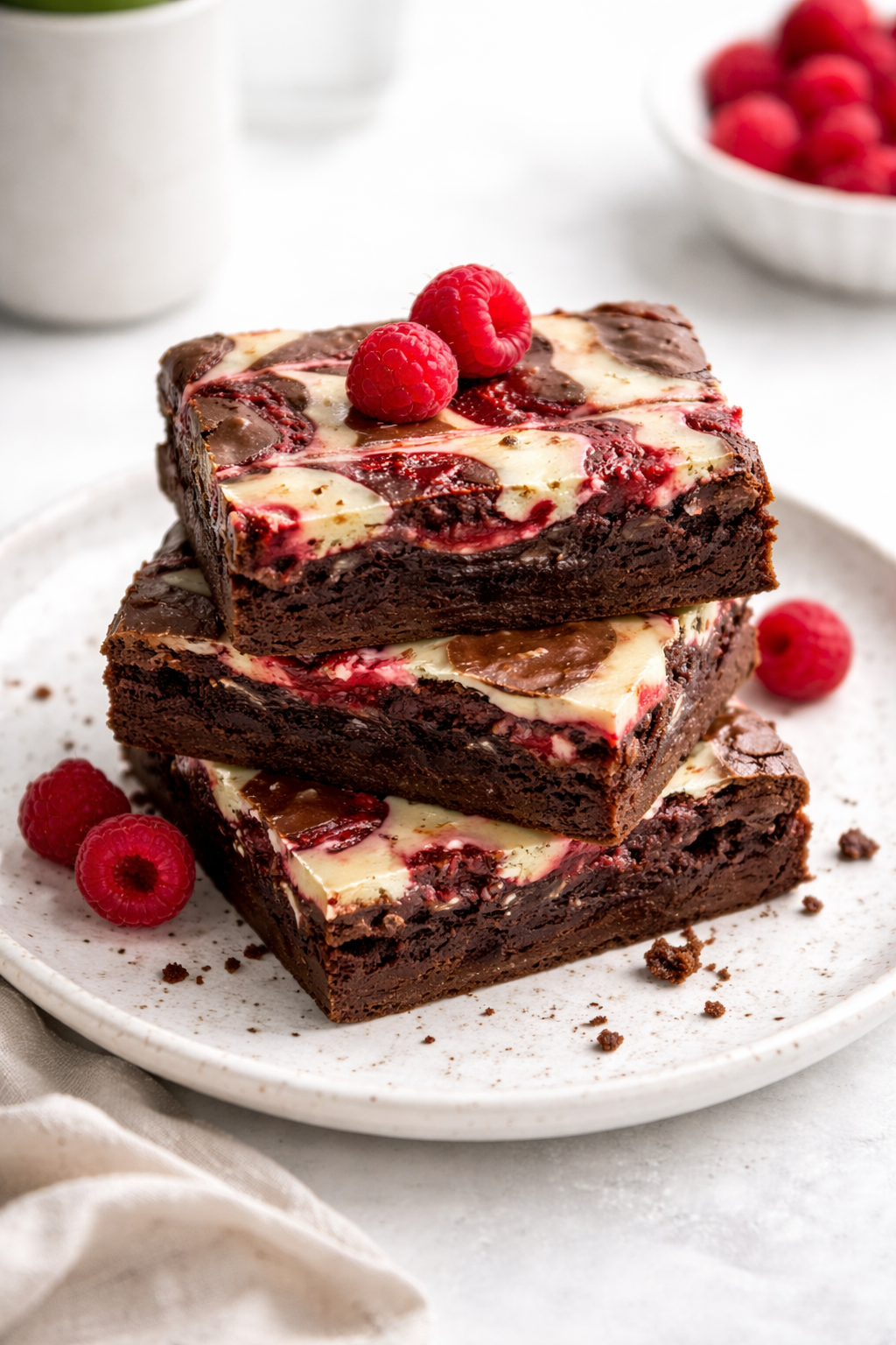 Deeply fudgy brownies made with nutty brown butter, a tangy cheesecake swirl, and homemade raspberry jam. A perfectly balanced, elegant dessert.