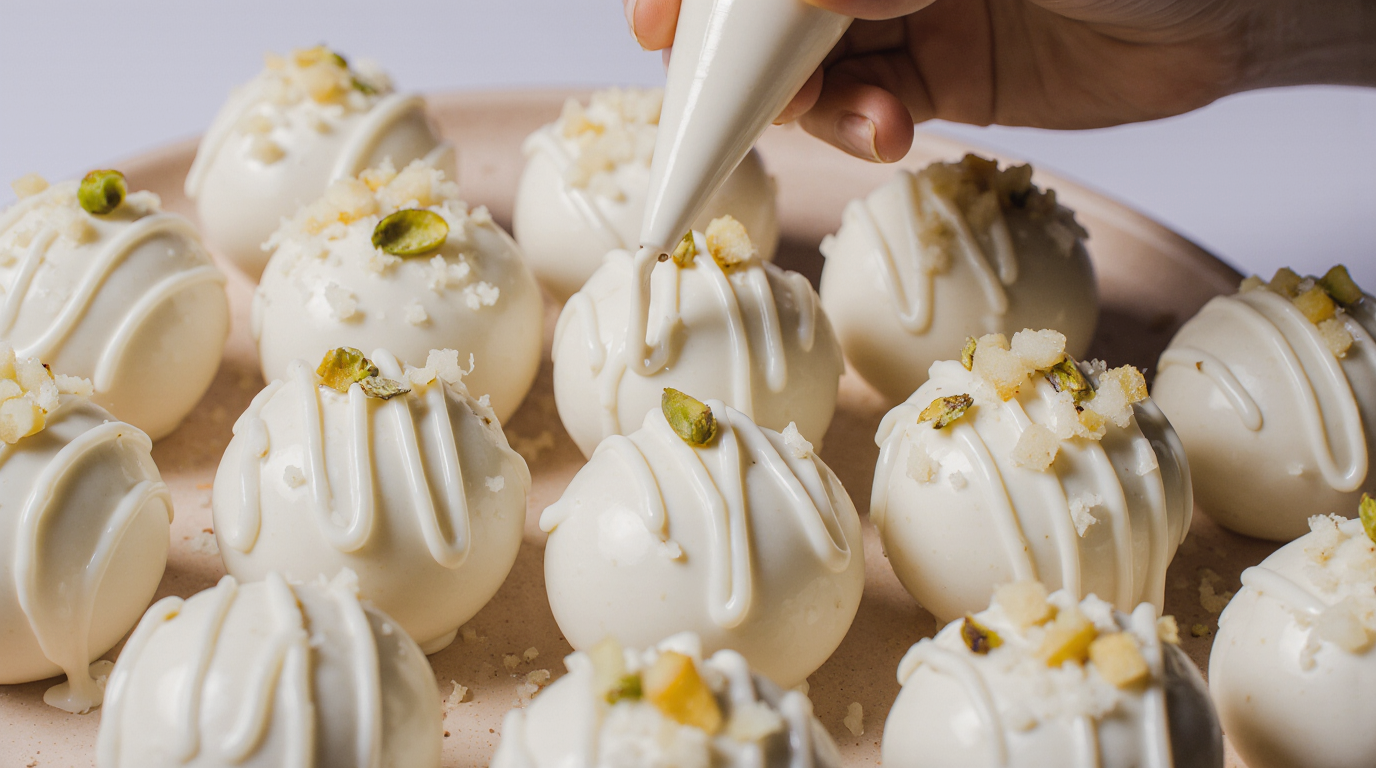 Velvety White Chocolate and Pistachio Ganache Truffles