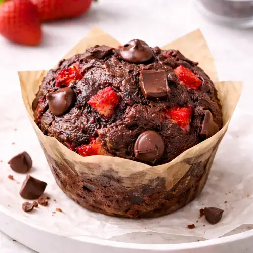 The combination of banana and chocolate is a classic, but adding fresh strawberries takes it to a whole new level. When the strawberries bake, they soften and release their juices, creating little pockets of jam that pair perfectly with the melted chocolate chunks. Because we use oil and sour cream, these muffins stay incredibly soft and moist for days, unlike butter-based muffins that can get a bit firm once they cool down.