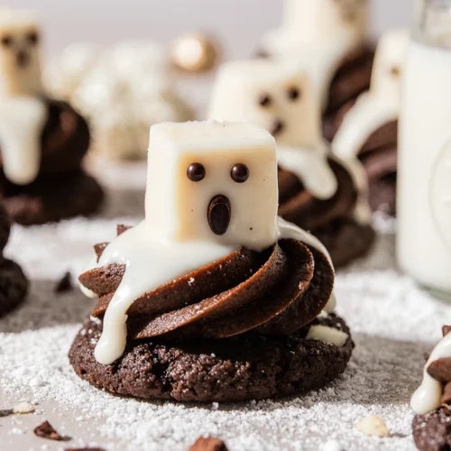 • A Charming and Unique Look: These cookies have a dramatic and creative visual that is perfect for a themed event. The combination of the dark chocolate cookie, the light and airy frosting, and the marshmallow ghost creates a dessert that is both beautiful and spooky.