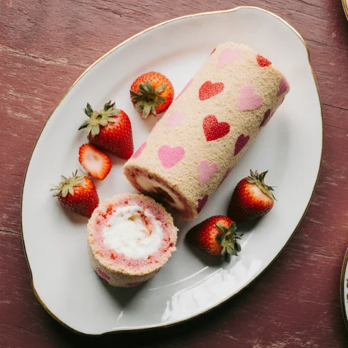 When it comes to Valentine’s Day, a standard box of chocolates just doesn’t cut it anymore. If you really want to show someone you care, you bring out the big guns: a dessert that looks like it took hours of professional training, but was actually made right in your home kitchen. This Strawberry Cake Roll is that showstopper. With its bright red heart pattern baked directly into the light-as-air sponge and a luscious cream cheese and strawberry jam filling, it’s the ultimate edible “I love you.”